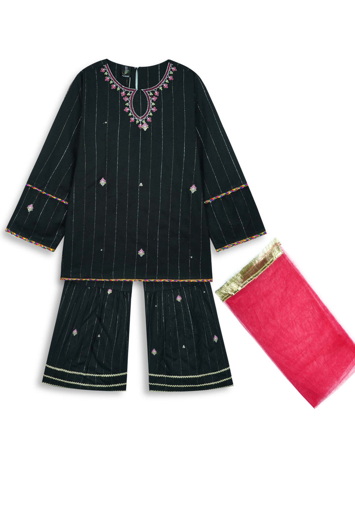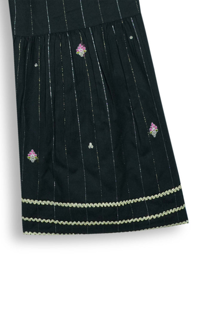 Black Embroidered Cotton Suit with Gharara for Girls | Festive 3-Piece Eastern Wear