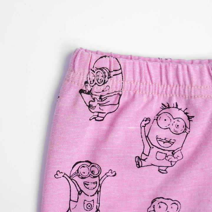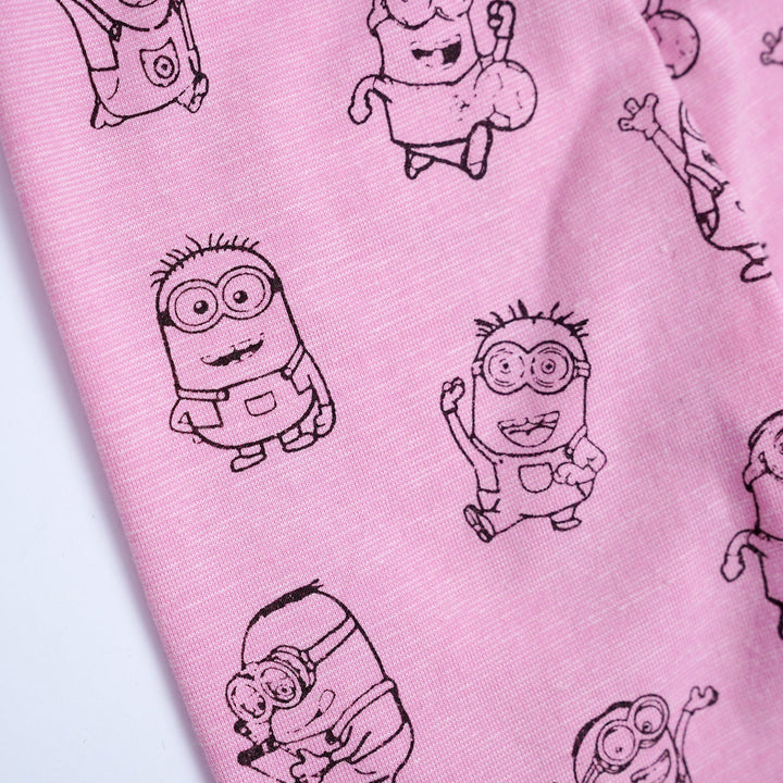 Cotton Rich Pink Allover Pink Minion Printed Leggings