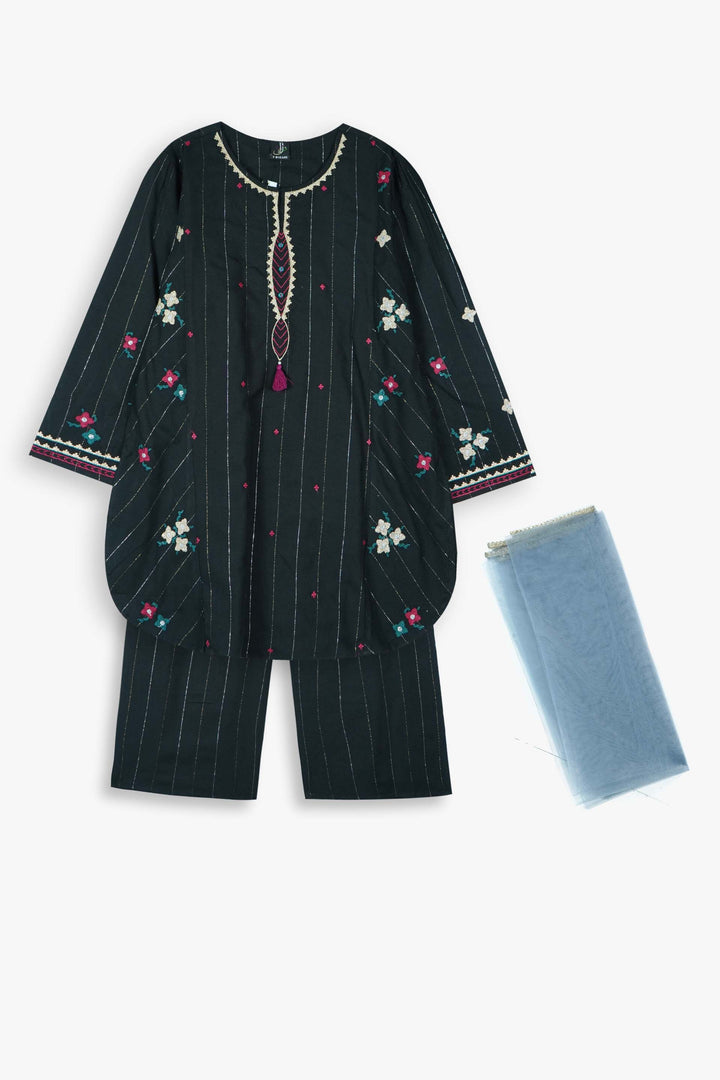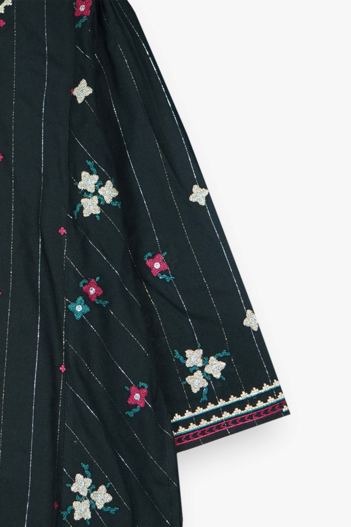 Girls Black Embroidered Cambric Suit | 3-Pieces Eastern Wear | Winter Collection