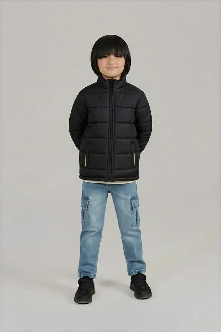 Kids Black Puffer Jacket | Lightweight Winter Outerwear | Warm & Stylish