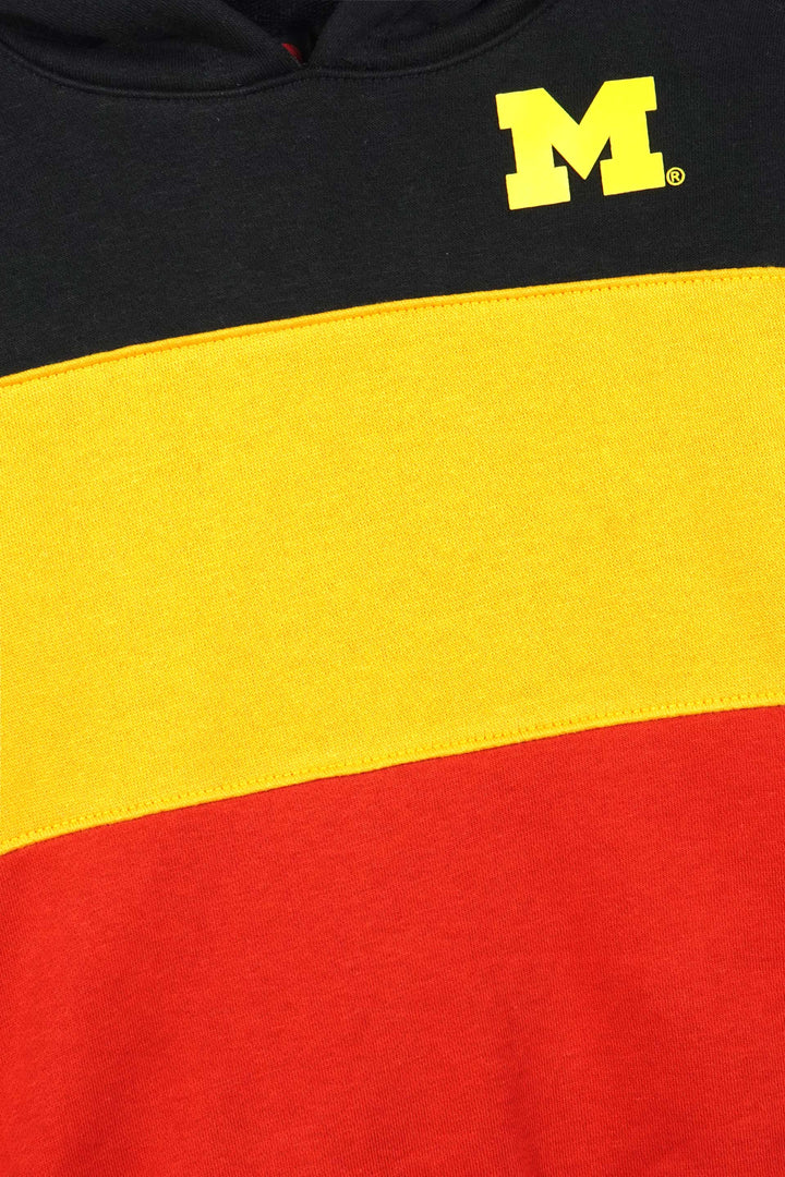Kids Color-Block Fleece Hoodie – Black, Mustard & Red