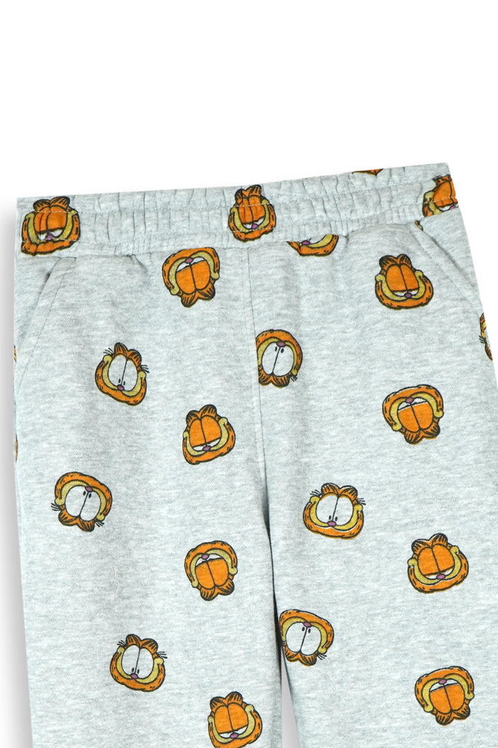 Bring comfort and style together with this kids fleece tracksuit, crafted from 100% premium cotton fleece for a warm, breathable, and cozy feel. This set features a short body hoodie and elastic jogger trousers, finished with a playful all-over Garfield-style character motifs print that makes it stand out.