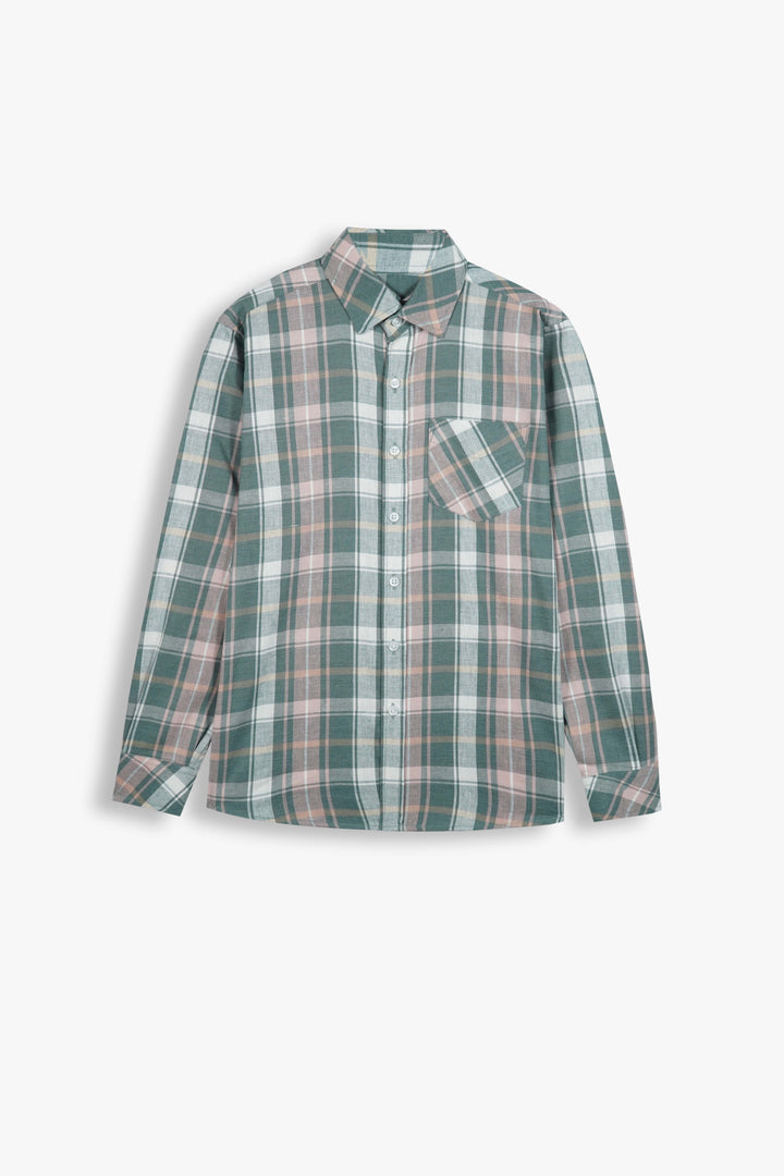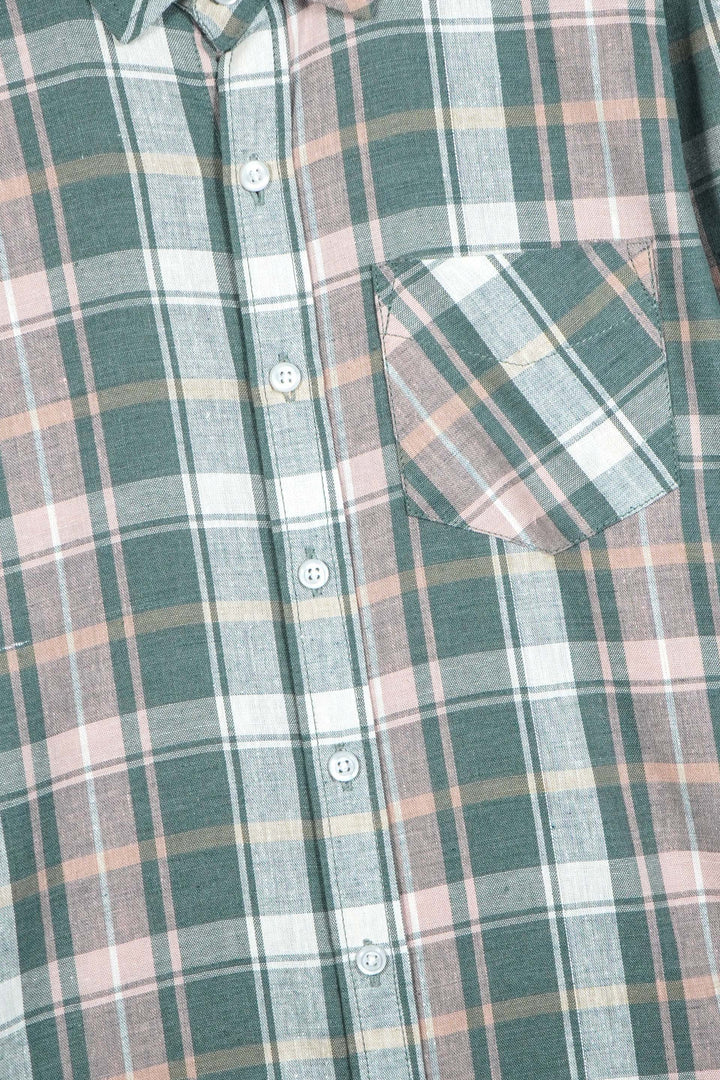 Kids Green-Grey Plaid Cotton Casual Shirt