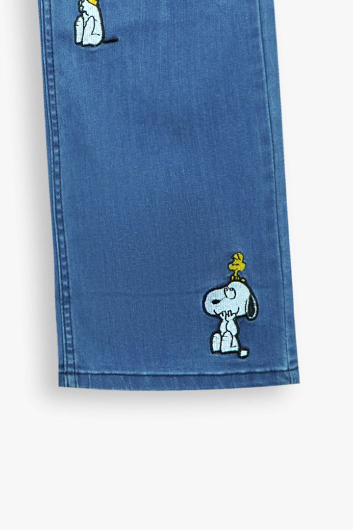 Kids Snoopy Embroidered Denim Pants | Wide-Leg Blue Jeans