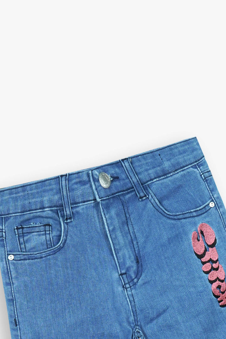 Kids Stitch Embroidered Denim Pants | Wide-Leg Blue Jeans