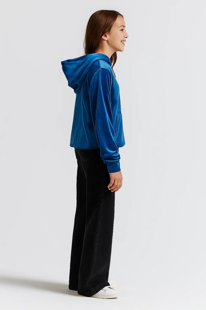 Wrap your child in luxurious comfort with this stunning royal blue velvet hoodie. Made from soft, plush velvet fabric, this hoodie is all about cozy vibes and standout style. Its smooth texture and subtle shine make it perfect for both casual wear and dressier occasions.