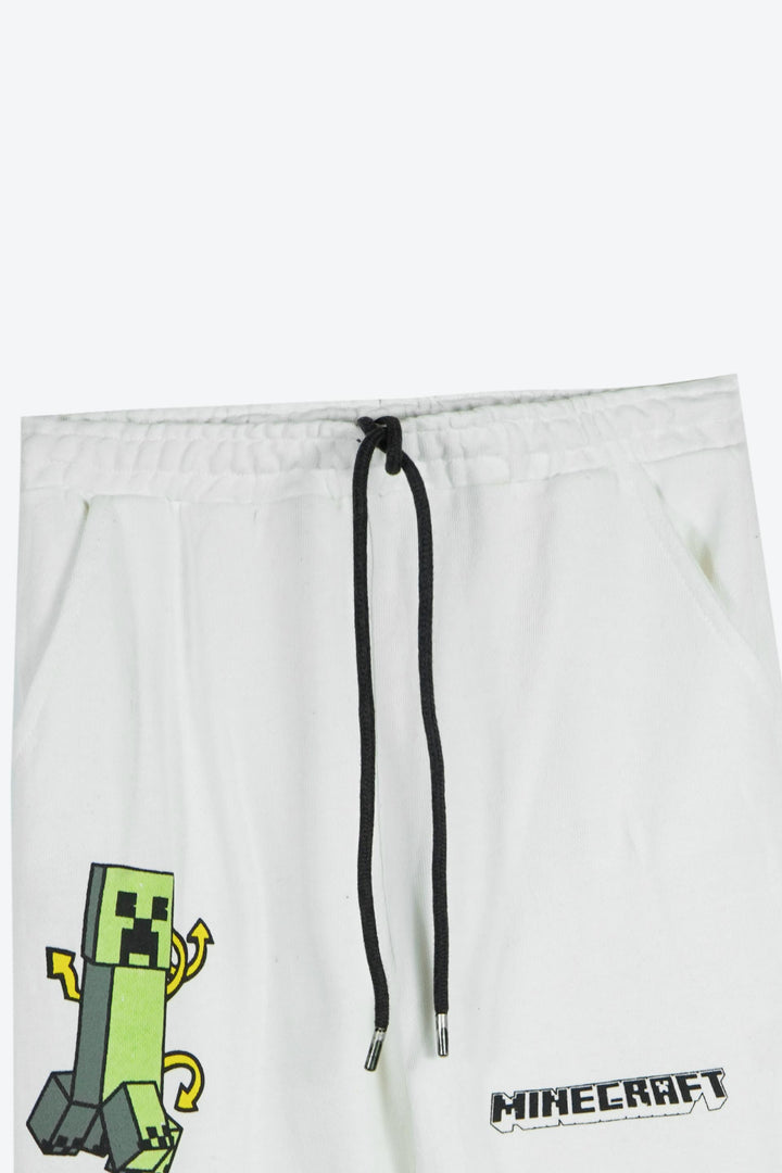 Minecraft Creeper Kids Jogger Pants – White | 100% Cotton Terry