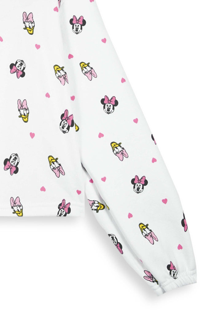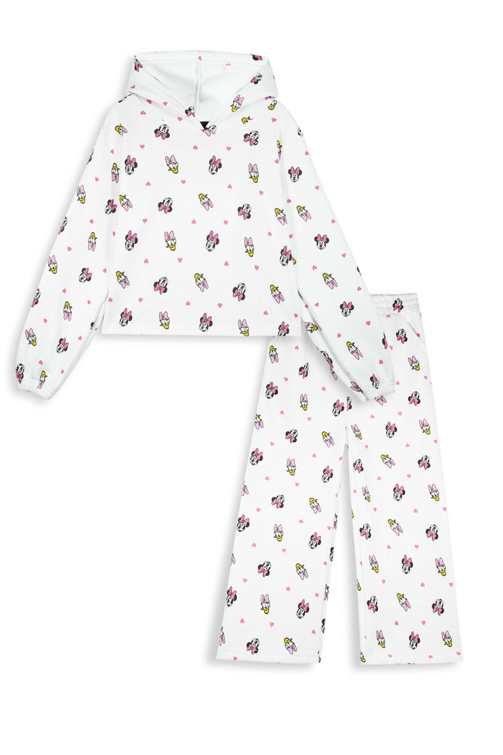 Minnie & Daisy Printed Fleece Tracksuit | Girls Short Body Hoodie & Wide Leg Trouser