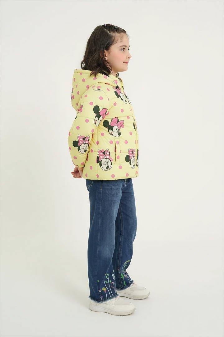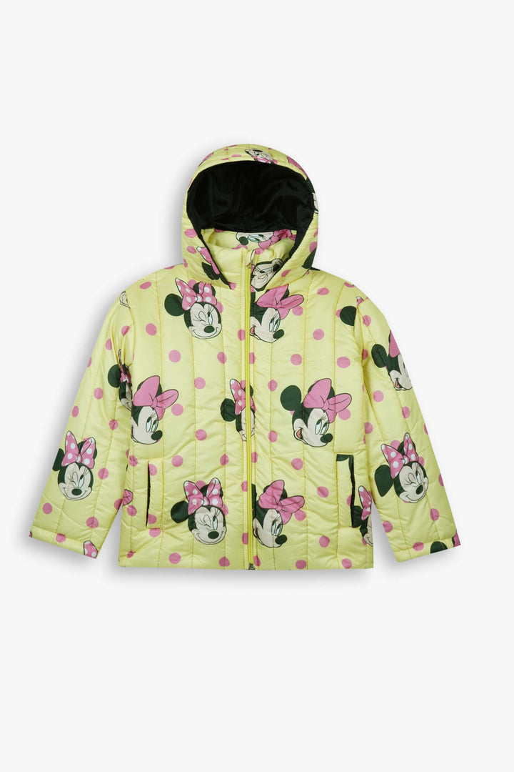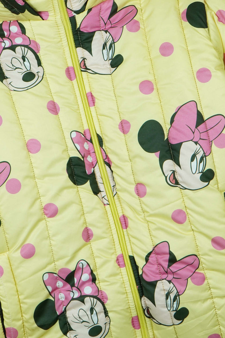 The soft yellow base with playful Minnie Mouse design makes it a must-have for little Disney fans. Complete with a full zip closure, protective hood, and quilted insulation, this jacket provides excellent warmth against cold winds. Functional side pockets add practicality, making it perfect for school, outings, and playtime.