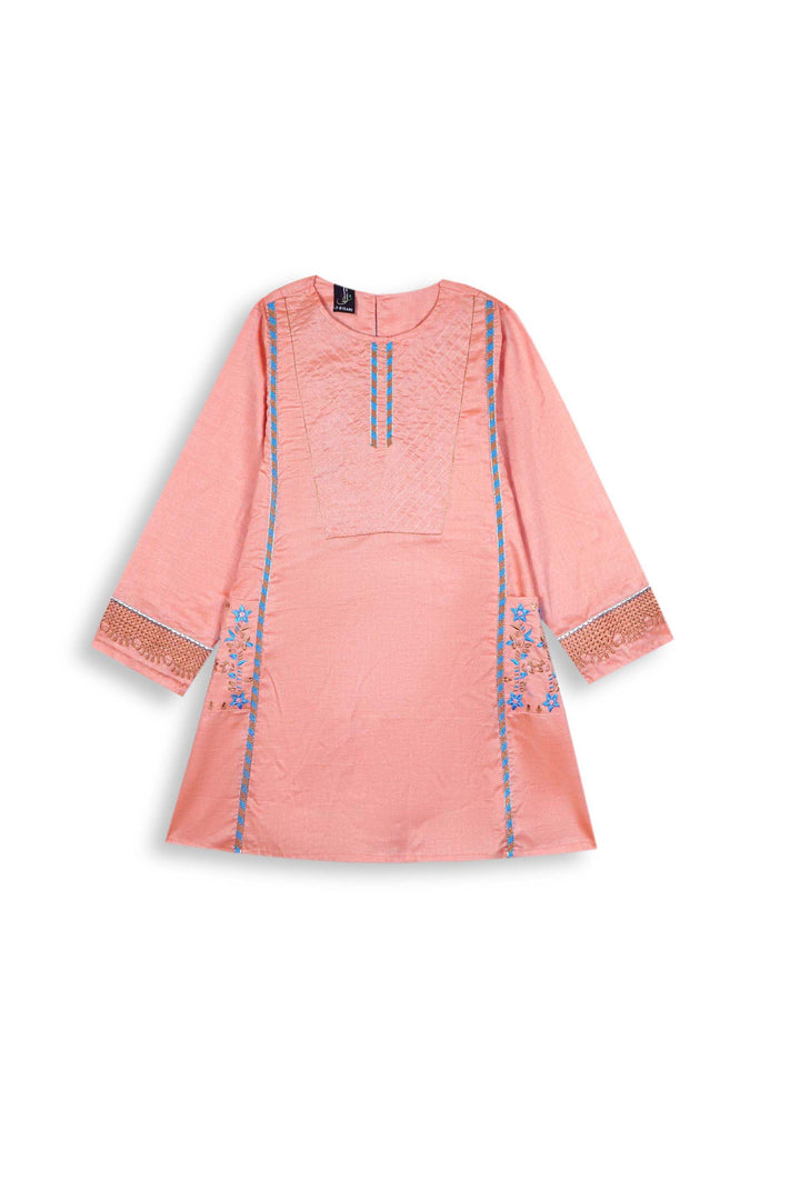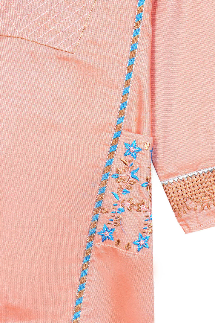 Peach Embroidered 3-Piece Cotton Suit for Girls | With Pockets & Dupatta
