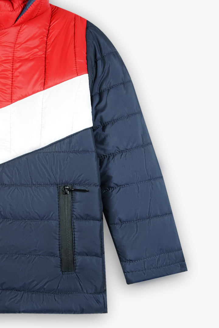 Red & Navy Kids Puffer Jacket | Warm Winter Hooded Puffer Jacker