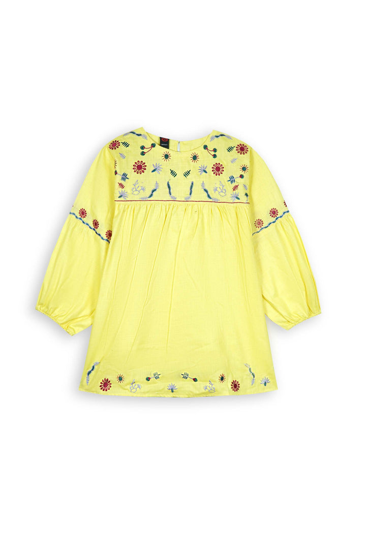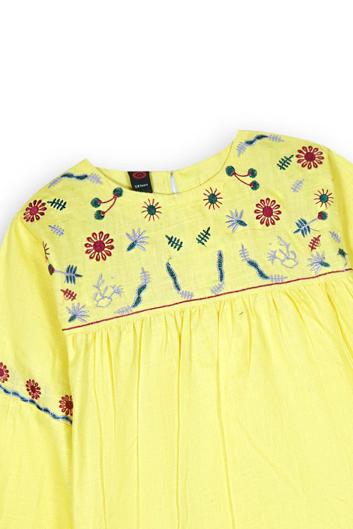 Yellow Embroidered Khaddar Top for Girls | Winter Floral Tunic
